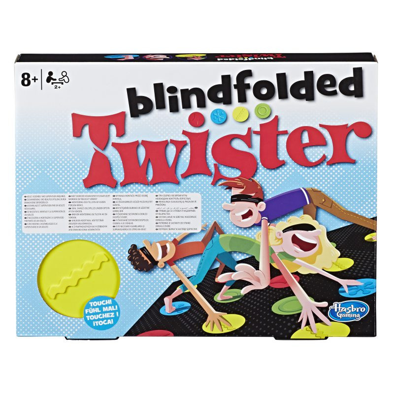 Gra Twister Blindfolded firmy Hasbro. Klasyczna gra Twister w nowej odsłonie. W tej wersji gracze mają zasłonięte oczy. Pola zostały wzbogacone o trójwymiarowe kształty, co pozwala na wyczucie pola. Ilość graczy 2+ Wiek 8+
