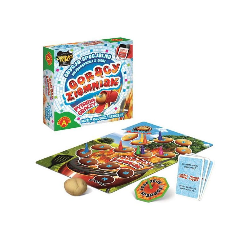 Gorący Ziemniak Pytania Graczy gra firmy Alexander. Kto z Was potrafi najszybciej myśleć pod presją czasu? Przygotujcie się, bo zaraz to sprawdzicie. W tej grze masz tylko kilka chwil, by wymyślić odpowiedź na pytanie i rzucić Gorącego Ziemniaka przeciwnikowi. Pozbądź się Ziemniaka zanim upłynie czas i się sparzysz. Odpowiadaj szybko, rzucaj celnie, łap dokładnie i nie spadnij na sam dół planszy. Ta edycja specjalna zawiera pytania graczy.Liczba graczy 2-8Wiek 8+ Ostrzeżenie:Nieodpowiednie dla dzieci w wieku poniżej 36 miesięcy. Małe części.