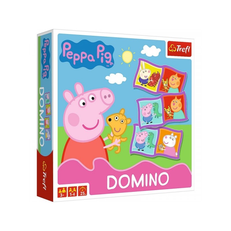Popularna gra Domino z bohaterami ulubionej dziecięcej bajki Świnka Peppa ćwiczy spostrzegawczość oraz pamięć. W opakowaniu 28 kart oraz instrukcja gry.