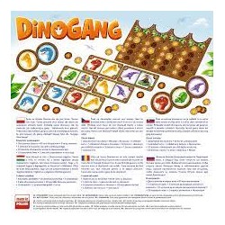 Dinogang gra planszowa, która polega na dokładaniu dinozaurów tak, by stworzyły jak najliczniejszy gang i zablokowały inne gatunki. Podrzucaj przeciwnikom gorącą lawę lub podkładaj przysmaki, by pokrzyżować ich plany. Zdobądź Wyspę tylko dla Twojego DinoGangu. Wesoła gra, która uczy zasad rywalizacji. Zawartość: