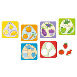 Pierwsza gra edukacyjna, dzięki której podczas wesołej zabawy mały gracz odkrywa, jak wyglądają poszczególne przekąski, i uczy się klasyfikowania według kolorów.