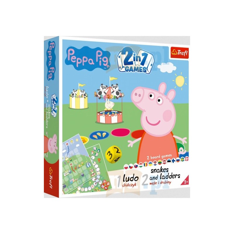 W zestawie znajdują się dwie gry, które ilustrowane są postaciami z bajki PEPPA