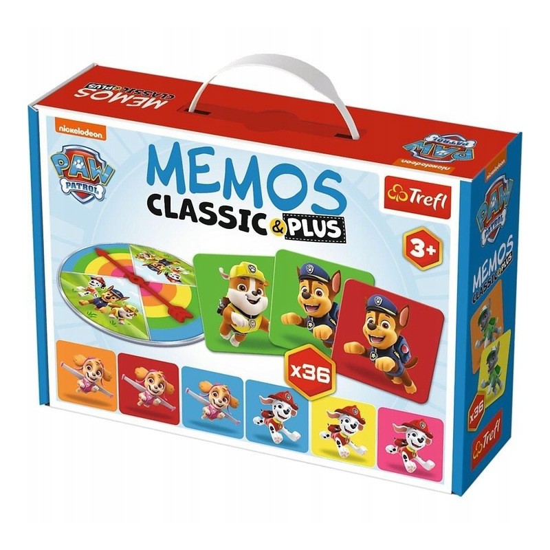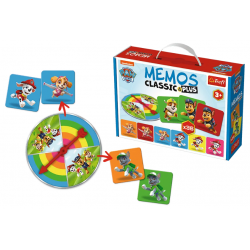Memos Classic & Plus Psi Patrol to gra pamięciowa oferująca możliwości rozgrywki o zróżnicowanym stopniu trudności. Rozpocznijcie zabawę od najprostszego wariantu i stopniowo przechodźcie do kolejnych wyzwań. Prosta gra rozwijająca wyobraźnię, spostrzegawczość, pamięć. Dla 1 -4 graczy. Wiek 3+.