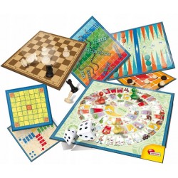 Zestaw ponad 60 klasycznych i wesołych gier w jednym pudełku. Znajdziemy tu gry dla całej rodziny, jak: Zabawa z gęsią, Schody i węże, Backgammona, Szachy, Gwardzistów, i złodziei, Zabójczą kostkę oraz wiele innych, fascynujących gier pochodzących ze starożytnego Egiptu i krajów nordyckich. Odkryj je wszystkie i baw się. Świat wyzwań i wielkich emocji czeka na Ciebie. Zawartość: 6 dwustronnych plansz, 32 pionki do szachów, 24 pionki do warcabów, 30 pionków do backgammona, 6 żetonów, 8 pionków, 2 kostki, przewodnik po grach.
