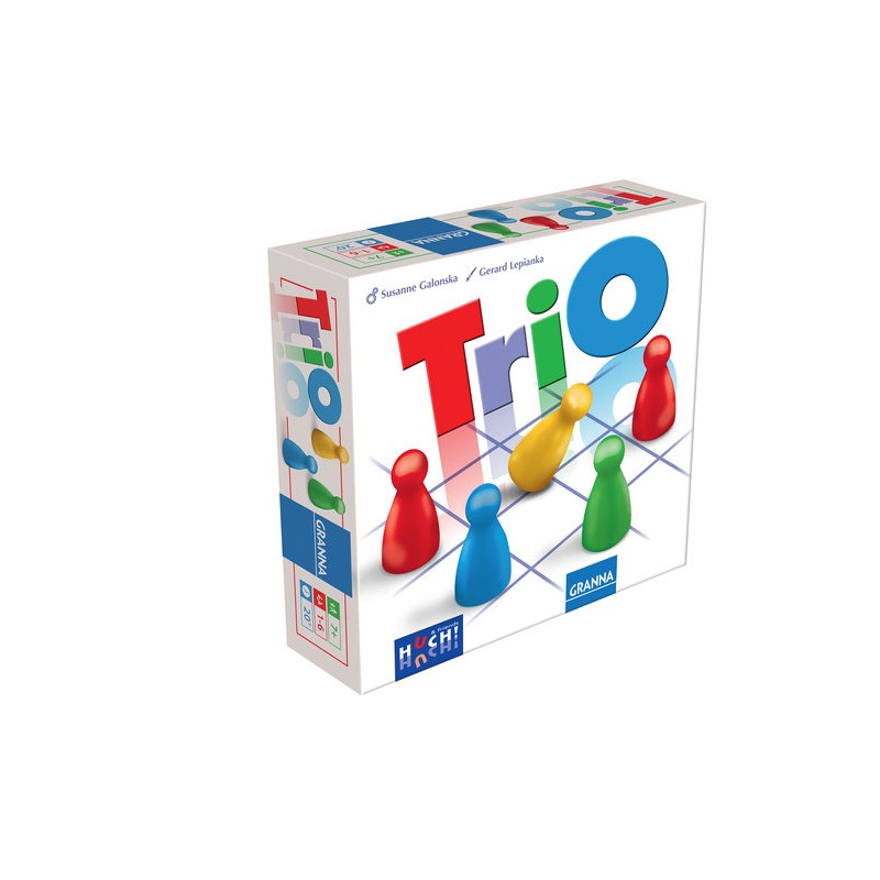 Proste reguły i angażująca rozgrywka przyczyniły się do jej popularności. W grze Trio gracze będą przestawiali jeden z pionków na planszy tak, by stworzyć ustawienie wskazane na jednej z kart. Zwycięży osoba, która zdobędzie ich najwięcej. Dla 1-6 graczy.