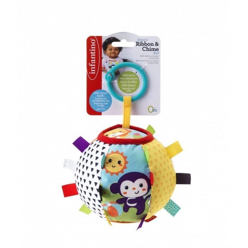 Miękka, pluszowa piłeczka pełna wzorów oraz kształtów. Kolorowe wypustki zachęcają do pociągania, lustereczko do przeglądania się a dzwonienie do turlania. Czarno-białe wzory pozytywnie wpływają na rozwój wzroku niemowlęcia. Wesołe zwierzątka oraz rysuneczki zachęcają do poznawania świata.