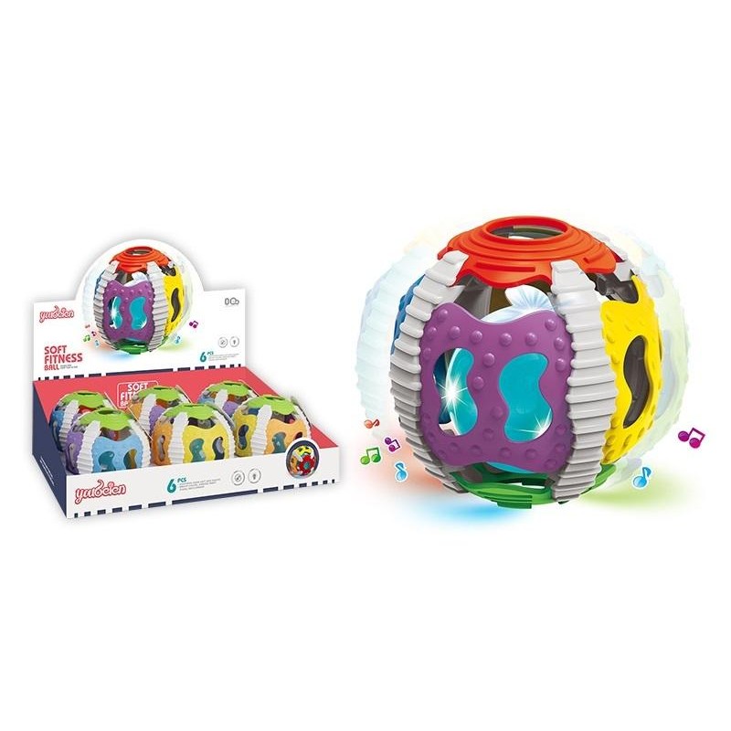Funkcje: elastyczna kula o średnicy 10 cm, sensoryczne boki, w środku plastikowa kulka z dźwiękiem i światłem.