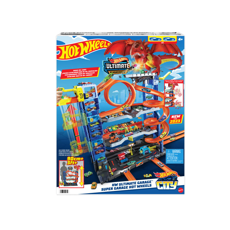 Ścigaj się, rób sztuczki kaskaderskie i walcz ze smokiem w Mega Garażu Hot Wheels City.