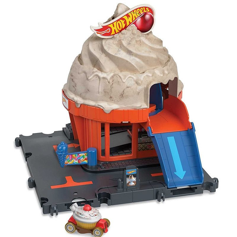 Asortyment zestawów Hot Wheels City pozwala Ci tworzyć Twoje własne miasto pełne niesamowitych przygód, kaskaderskich sztuczek i epickich starć. Znajome lokalizacje, takie jak warsztat, burgerownia, lodziarnia, myjnia czy parking, sprawiają, że dzieci będą chciały zebrać je wszystkie i w nieskończoność poszerzać możliwości zabawy. Wszystkie zestawy łączą się z innymi zestawami Hot Wheels za pomocą licznych punktów łączenia, więc łatwo rozbudować system zabawy. Każdy zestaw zawiera jeden pojazd Hot Wheels, aby zabawę można było zacząć od razu po otwarciu opakowania.