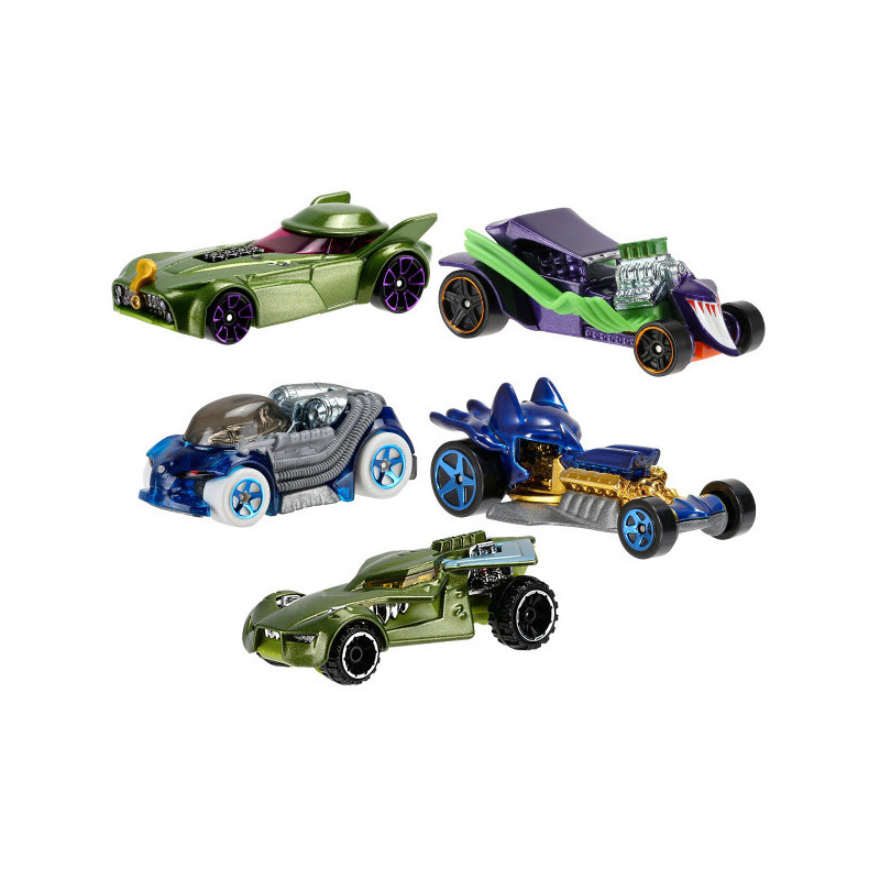 Hot Wheels Batman vs Superman 5-pak firmy Mattel. Zestaw 5 samochodzików Hot Wheels inspirowanych światem Batmana. Samochodziki łączą się z torami z serii Hot Wheels. Wiek 3+