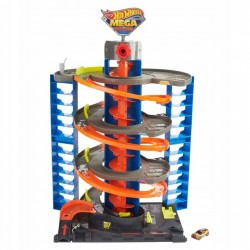 Najnowszy Mega Garaż Hot Wheels City! Zestaw Hot Wheels City Power Parking oferuje aż cztery poziomy fantastycznej zabawy. Garaż posiada spiralną windę oraz miejsce na ponad 60 pojazdów. Wyposażony jest wiele punktów połączeń, dzięki czemu dzieci mogą zbudować indywidualny zestaw torów Hot Wheels. Dzieci mogą używać korby do sterowania spiralną windą, która prowadzi pojazdy na różne poziomy i pozwala im poruszać się po torze.