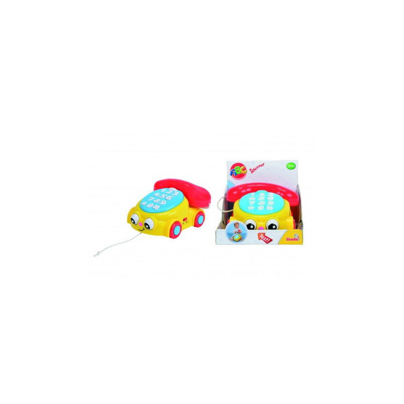ABC Wesoły telefonik firmy Simba. Telefonik do ciągnięcia na sznurku. Wyposażony jest w przyciski z dźwiękami, melodiami i wibrację. Całość wykonana z wysokiej jakości materiałów. Wiek 1+
