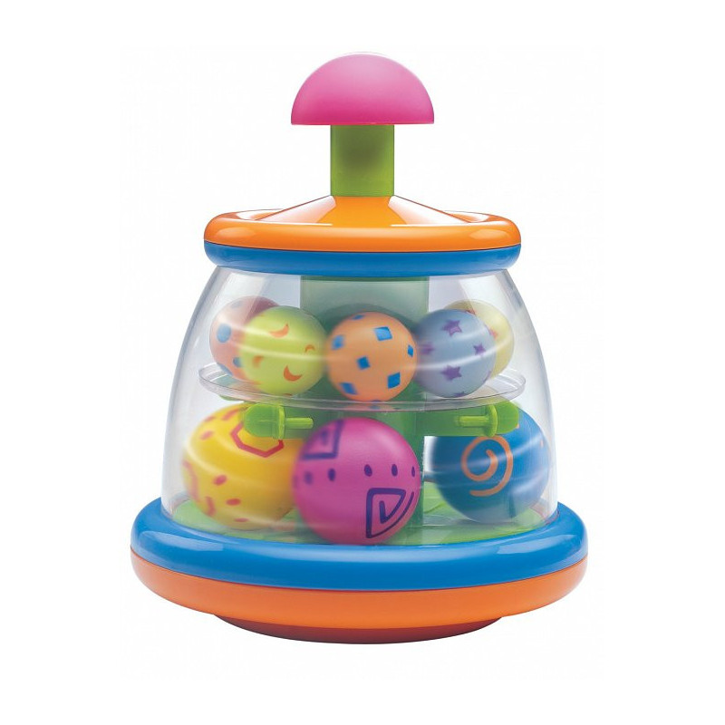 B-KIDS 73600 BĄCZEK Z KULKAMI Kolorowy bączek z kulkami . Wciśnij przycisk na szczycie zabawki aby wprawić w ruch kolorowe piłeczki. Wiek: 6m+