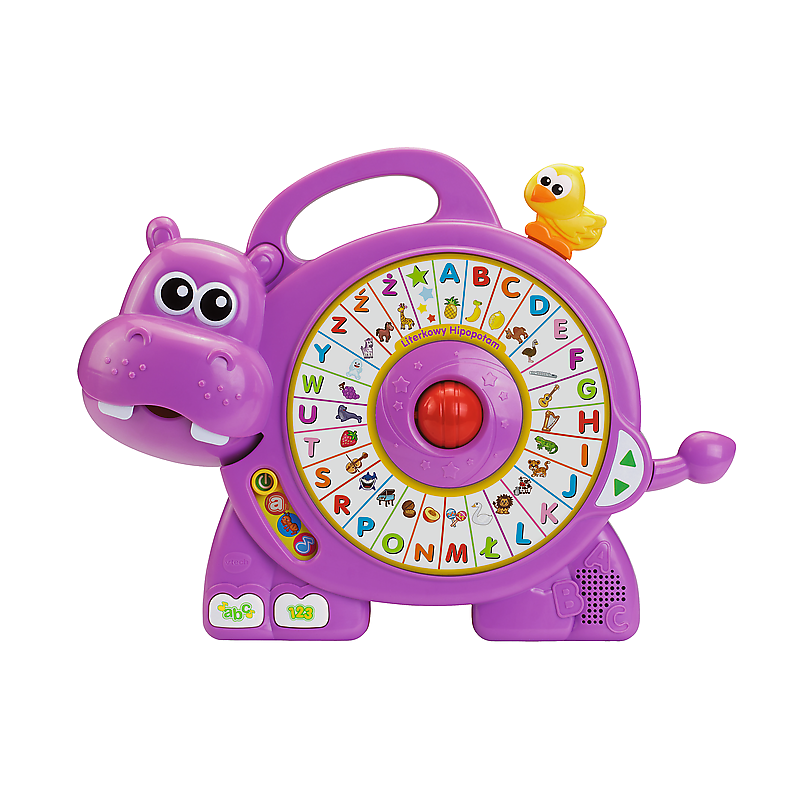 Literkowy hipopotam firmy V-Tech. Zabawka edukacyjna wyposażona w 6 zabaw, uczących słów, wymowy, liter i liczb. Dodatkowo ma regulację głośności oraz oraz funkcję automatycznego wyłączania. Wykonana z wysokiej jakości materiałów. Wiek 2+