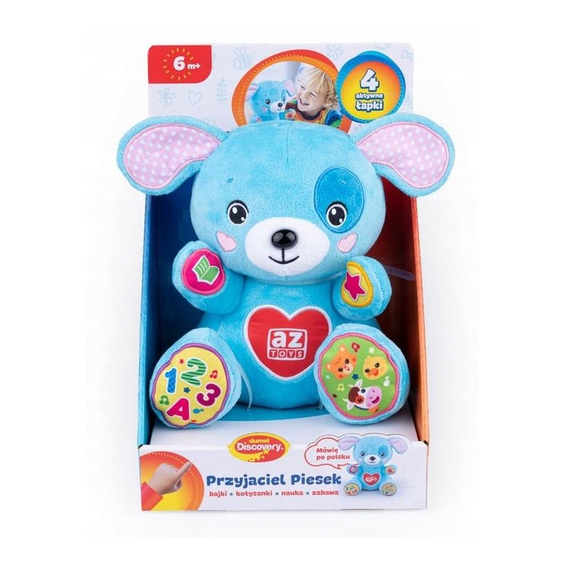 Piesek zna kilka pięknych bajek, potrafi śpiewać, liczyć od 1 do 5, zna literki, a także nazwy i odgłosy innych zwierzątek. Gdy po zabawie przyjdzie ochota na odpoczynek, piesek zagra słodkie, miłe dla ucha kołysanki, które pozwolą się wyciszyć i zrelaksować.