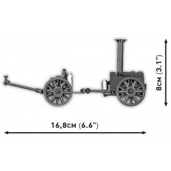 Model zaprzęgu konnego z kuchnią polową z łatwością zbudujesz przy pomocy czytelnej instrukcji opartej na prostych ikonach. Do zestawu dołączona jest figurka kucharza z epoki oraz akcesoria zbudowane z klocków COBI (chochla, kubek, menażka, butelka, bułka). Kuchnia polowa może zostać oddzielona od przodka (wozu) oraz konia. Zestaw powinien szczególnie zainteresować osoby, które dopiero zaczynają swoją przygodę z klockami konstrukcyjnymi z COBI oraz wszystkich kolekcjonerów serii Historical Collection i budowniczych dioram! Konstrukcja stanowi również idealną bazę do budowania konnych zaprzęgów z artylerią. Entuzjaści kolekcji GREAT WAR również powinni zainteresować się tym zestawem. Niemal identyczne kuchnie polowe były używane podczas Wielkiej Wojny, a dołączona do zestawu figurka z nadrukiem na plecach jest bardzo uniwersalna!