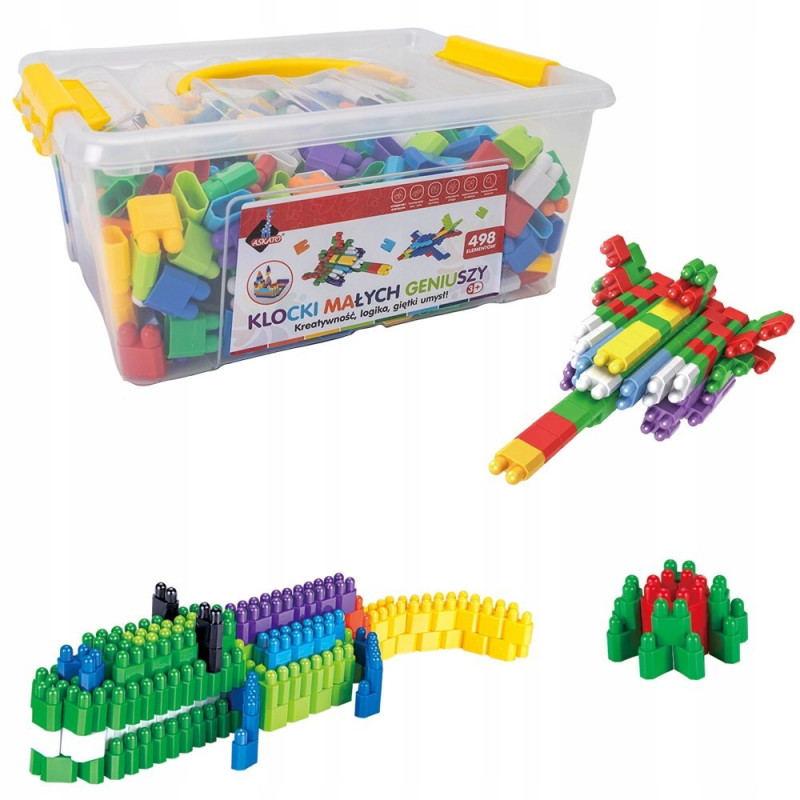 Super, kolorowe klocki rozwijające wyobraźnię oraz postrzeganie przestrzenne dziecka. Klocki pozwalają stworzyć figury takie jak pianino, krokodyl, statek czy czołg. Zabawka rozwija dziecięcą kreatywność, umiejętność tworzenia różnych budowli, konstrukcji.