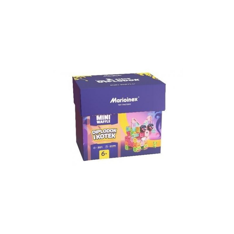 Diplodok i Kot to zestaw z serii Mini Waffle, który zabierze Cię w świat niesamowitych przygód Smoka Diplodoka. To xx elementów, z których zbudujesz wielkiego, kolorowego kota i figurka Smoka Diplodoka, który wciągnie Ciebie i Twoją pociechę do świata, w którym wszystko jest możliwe. Łącz zestawy z serii Smok Diplodok i stwórz magiczną krainę pełną niezwykłych historii i najdziwniejszych postaci!
