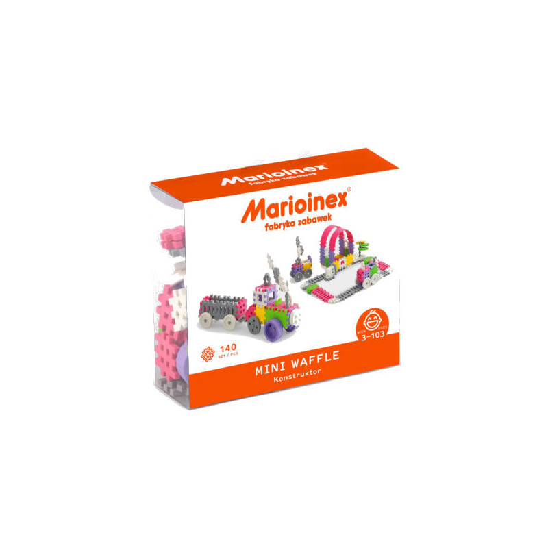 Klocki konstrukcyjne Mini Wafle firmy Marioinex. Klocki miniwafle wykonane z wysokiej jakości elastycznego materiału w żywej kolorystyce. Wafle w mniejszym rozmiarze dają więcej możliwości zabawy. Pozwalają tworzyć mniejsze konstrukcje niż standardowe klocki wafle, przez co do zabawy wystarczy zdecydowanie mniej miejscą. Wykonane z elastycznego tworzywa pozwalają na wyginanie ich w różnych kierunkach.