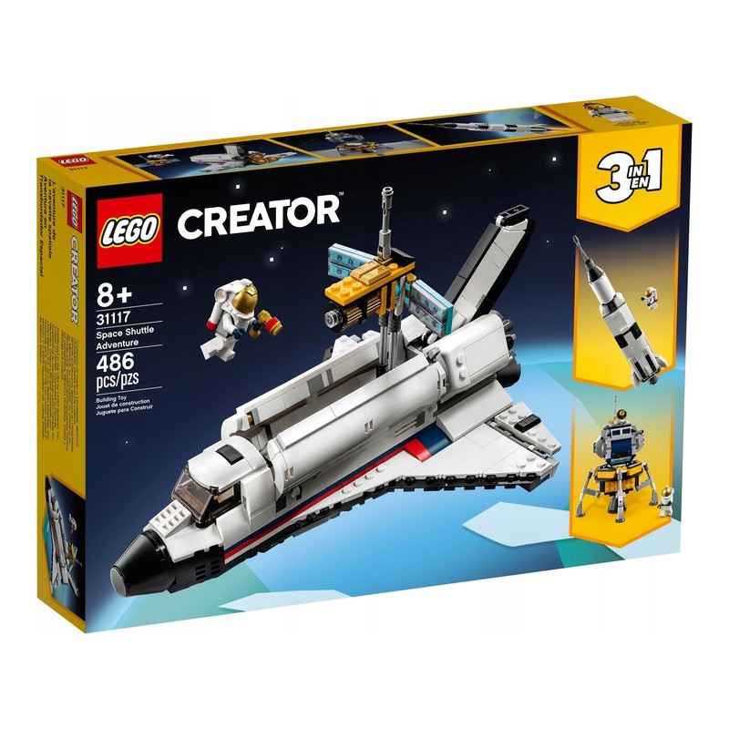 Lego Creator 3 w 1 Przygoda w promie kosmicznym inspiruje do odgrywania ról i wspaniałej zabawy trzema modelami: promem kosmicznym, rakietą i lądownikiem księżycowym. W komplecie 486 elementów, w tym nowa minifigurka astronautki (nowość na 2021 rok) z hełmem i narzędziem uniwersalnym. Badaczka kosmosu może podróżować każdym z trzech pojazdów, co pomoże urozmaicić zabawę. Prom kosmiczny ma ok. 12 cm wysokości, 28 cm długości i 19 cm szerokości, ma wysuwane ramię z satelitą i chowane koła, rakieta — ciekawie wyglądające silniki, a lądownik księżycowy — odczepiany człon wznoszenia. Z tym fantastycznym zestawem 3 w 1 wzniesiesz się do gwiazd.