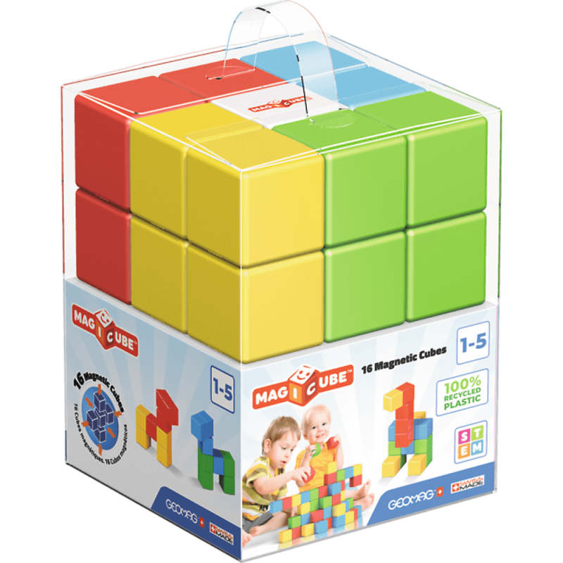 Geomag to genialny, ale prosty system konstrukcyjny z magnetycznymi klockami, za pomocą których można tworzyć nieskończoną liczbę figur i trójwymiarowych konstrukcji. Potężne magnesy, unikalny klik, wysokiej jakości materiały, wytrzymała konstrukcja i świetne kolory sprawiają, że budowanie jest łatwe i przyjemne! Świetna zabawka stymuluje wgląd w przestrzeń, rozwija bryłę budowli oraz pobudza kreatywność i logiczne myślenie. Dzięki temu zestawowi dzieci mogą odkrywać klasyczną kostkę i budować nieskończone figurki. Klocki są wykonane w 100% z plastiku pochodzącego z recyklingu.