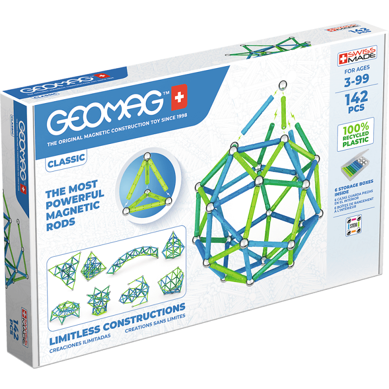Super klocki Geomag to konstrukcyjne klocki magnetyczne, za pomocą których można stworzyć niezliczone, różne konstrukcje. Zabawa klockami pobudza wyobraźnię, stymuluje kreatywność i rozwija ich intelekt. W skład zestawu wchodzą magnetyczne patyczki i metalowe kulki, które łączą się ze sobą w dowolny sposób. Poprzez łączenie elementów zestawu, mali konstruktorzy rozwijają zdolności manualne oraz ćwiczą koncentrację, klocki pobudzą ich matematyczną ciekawość.