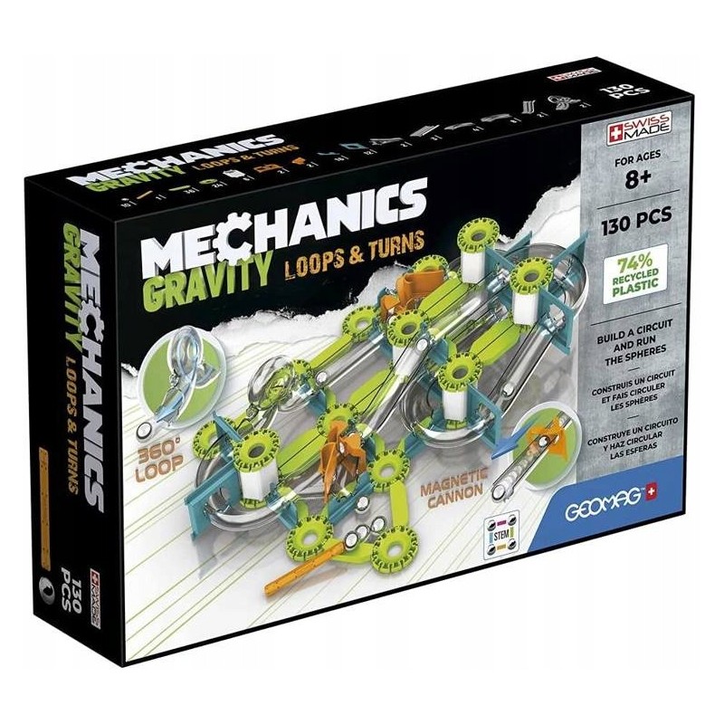 Pomogą odkryć fizyczne zasady magnetyzmu i grawitacji, wypróbować mechanizm napędzany siłami grawitacji, nauczyć się podstaw mechaniki. 130 elementów. Wiek 8+.