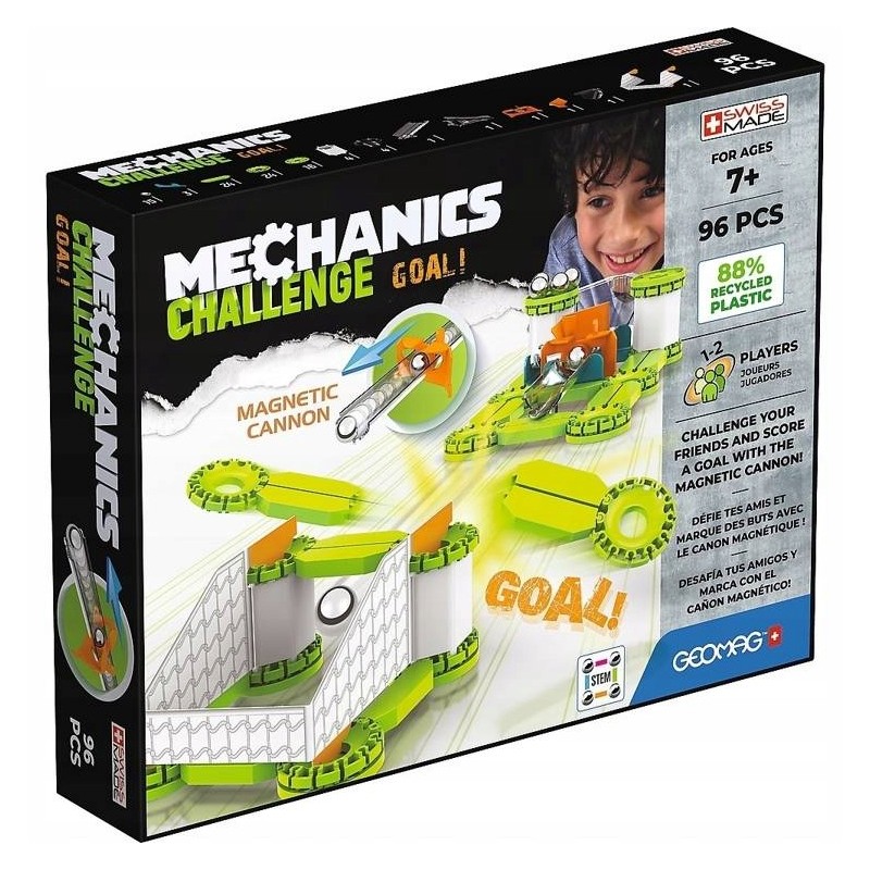 Zbadaj siłę magnetycznych uderzeń. Zestawy Mechanisc są wykonane z tworzyw sztucznych pochodzących z recyklingu.