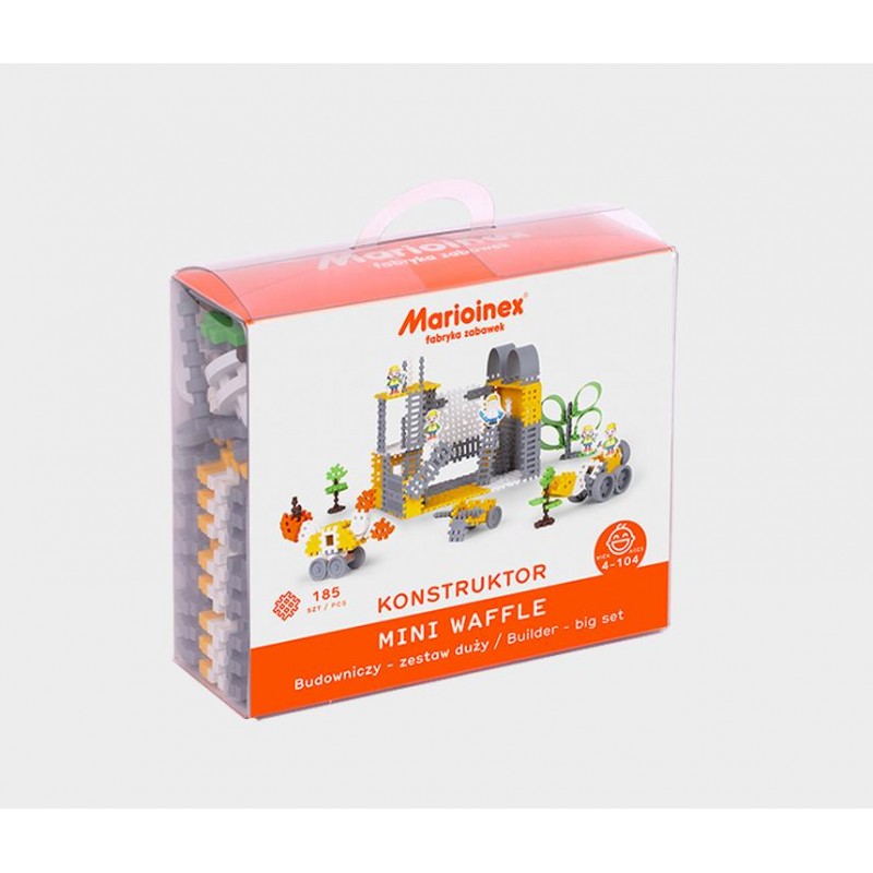 Klocki konstrukcyjne Mini Wafle firmy Marioinex. Klocki miniwafle wykonane z wysokiej jakości elastycznego materiału w żywej kolorystyce. Wafle w mniejszym rozmiarze dają więcej możliwości zabawy. Pozwalają tworzyć mniejsze konstrukcje niż standardowe klocki wafle, przez co do zabawy wystarczy zdecydowanie mniej miejsca. Wykonane z elastycznego tworzywa pozwalają na wyginanie ich w różnych kierunkach.