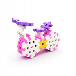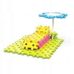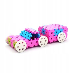 Elastyczne i przyjemne w dotyku klocki przypominające puzzle, przeniosą malucha w świat wyobraźni. Cztery rodzaje elementów w przyjaznych kolorach. Płaskie, jednolite elementy w przyjemnych kolorach z łatwością można ze sobą łączyć za pomocą specjalnych ząbków umożliwiających budowanie płaskich oraz przestrzennych form. Konstrukcję łatwo zdemontować i uprzątnąć, gdyż klocki nie posiadają zatrzasków, zaczepów ani innych trudnych do rozmontowania części. Obie czynności - łączenie jak i demontowanie, stanowią przyjazne wyzwanie dla zwinnych, małych paluszków. 600 elementów do aktywnej zabawy, zachęci Twoje dziecko do tworzenia obiektów płaskich i przestrzennych o większym stopniu skomplikowania. Łatwe łączenie elementów i różne kolory w zestawie motywuje brzdąca do budowania pojazdów, zwierzątek, robotów lub domków. Nieograniczona wyobraźnia dziecka pozwoli mu tworzyć dowolne kształty. Zabawka wspiera rozwój motoryczny. Seria różowa. Wiek 3+.
