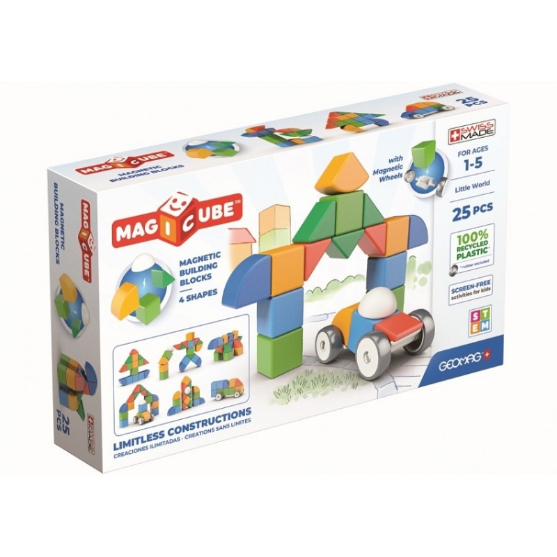 Materiały znajdujące się w zestawie w 100% pochodzą z recyklingu. Dzięki temu klocki Magicube są przyjazne środowisku. Wiek 12m+.