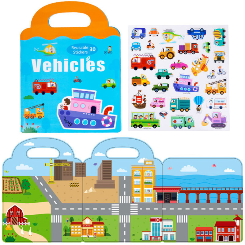 Książeczka, która zawiera naklejki z postaciami pojazdów. Do wyklejenia w środku.