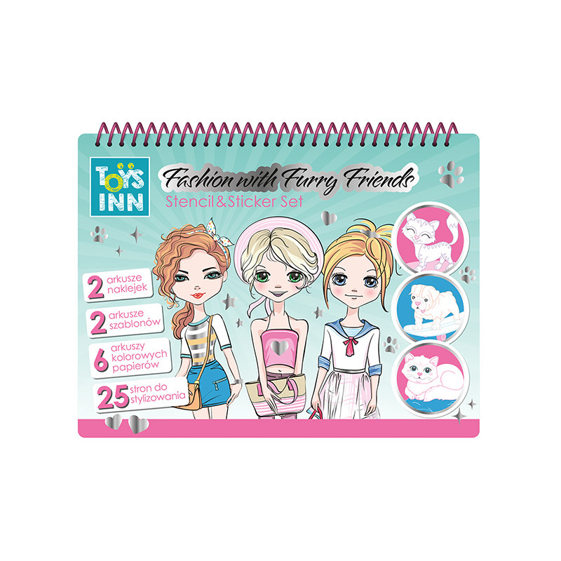Zestaw zawiera różnorodne naklejki przedstawiające modowe dodatki. Można je dowolnie łączyć i tworzyć własne, unikalne projekty dla modowych postaci i ich futrzanych przyjaciół. Książeczka rozwija wyobraźnię, kreatywność oraz zdolności manualne.