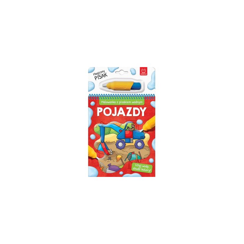 Kolorowanka z pisakiem wodnym dedykowana najmłodszym dzieciom. Przeróżne kształty, kolory i obrazki pojawią się za każdym pociągnięciem pisaka. Dołączony do książki pisak wystarczy napełnić wodą i można już rozpocząć zabawę – na zwilżonych mokrym pędzelkiem stronach pojawią się kolorowe ilustracje. Znikną, kiedy strona wyschnie. Książką można bawić się wiele razy.