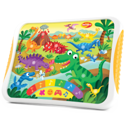 Super zabawka edukacyjna! Tablet opowie ciekawostki, o każdym z dinozaurów widocznych na obrazku, oczywiście w języku polskim, a także poda ich nazwy. Zabawka wyposażona jest w kilka trybów zabawy. Poza, wyżej opisanym, trybem ciekawostek, na najmłodszych czeka tu też tryb gra, w którym dziecko może sprawdzić wcześniej przyswojoną wiedzę w praktyce, udzielając odpowiedzi na pytania dotyczące dinozaurów. W trybie kolory, maluch uczy się rozróżniać barwy. W tej zabawie także główną rolę odgrywają dinozaury. Tryb melodie aktywuje wesołą muzykę.