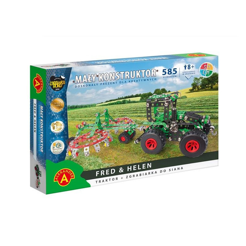 Mały konstruktor Fred & Helen firmy Alexander. Model składający się z różnej wielkości kształtów i elementów do samodzielnego zbudowania pojazdu. Zestaw zawiera również narzędzia potrzebne do skręcenia modelu. Zestawy z serii można łączyć między sobą. Ilość elementów 585 Wiek 8+ Ostrzeżenie:Nieodpowiednie dla dzieci w wieku poniżej 36 miesięcy. Małe części.