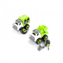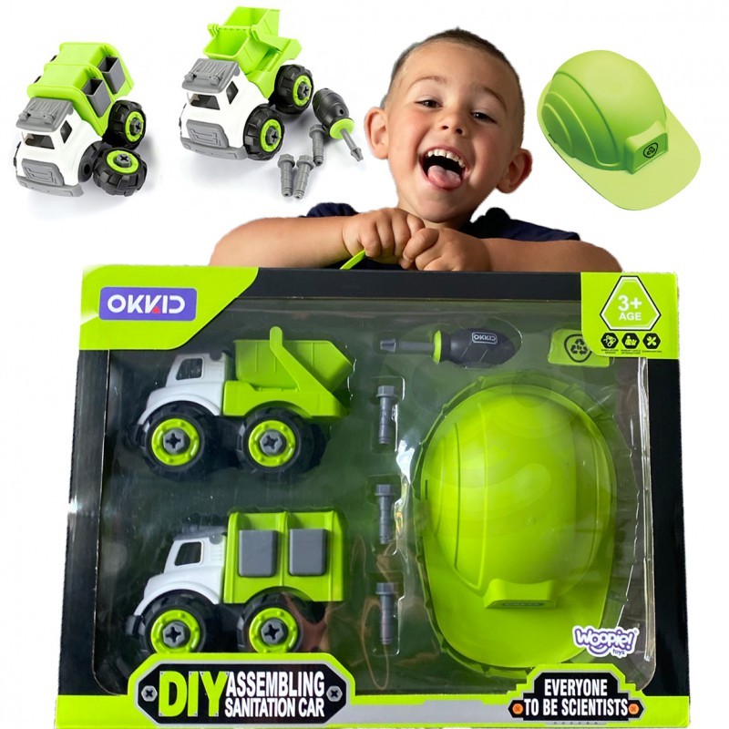 Zestaw Majsterkowicza pozwoli Twojemu dziecku wcielić się w konstruktora i bawić się pojazdami bez końca! Dziecko posiada pełen zestaw do montażu m.in. kask chroniący głowę, śrubokręt oraz 3 śrubki. Do złożenia dziecko dostaje 2 pojazdy sanitarne: ciężarówkę / śmieciarkę oraz ciężarówkę / wywrotkę. Pojazdy można nie tylko składać, demontować, ale również można się nimi bawić oraz dodatkowo korzystać z funkcji jak ruchome elementy np. ruchoma przyczepa wywrotki. Zabawka rozwija zdolności motoryczne dziecka (usprawnia rączki), inteligencję, kreatywność, wyobraźnię oraz zachęca do integracji rodzic-dziecko podczas wspólnego składania.