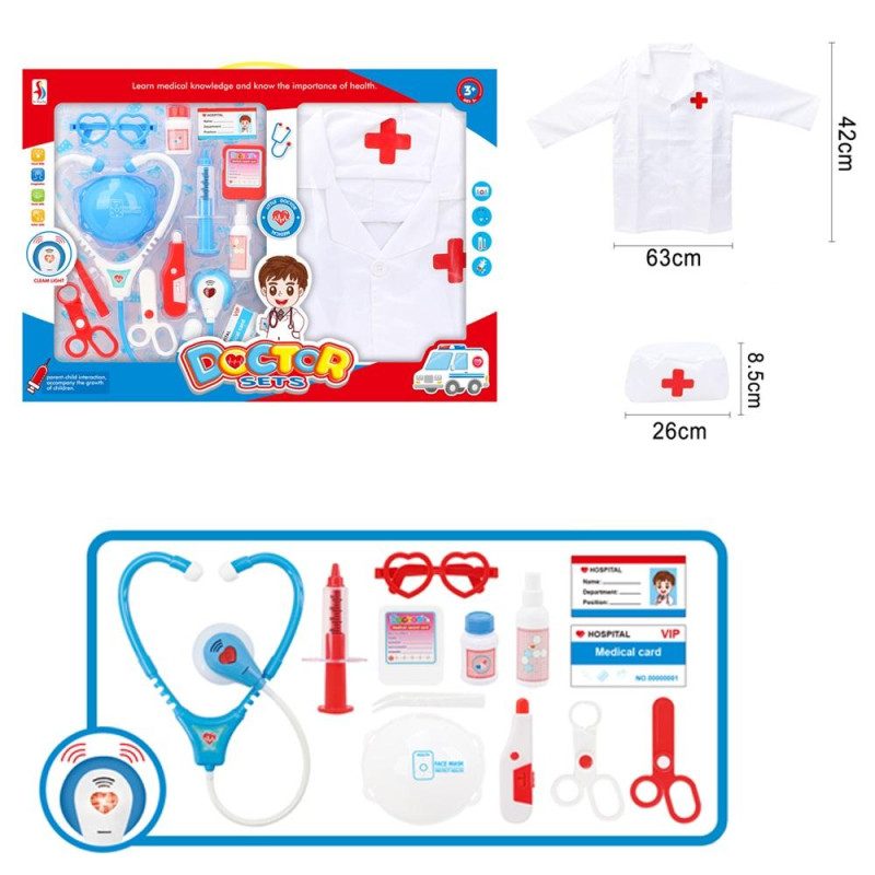 Super zestaw dla małych lekarzy, fartuch i mnóstwo akcesoriów. To będzie świetna zabawa!