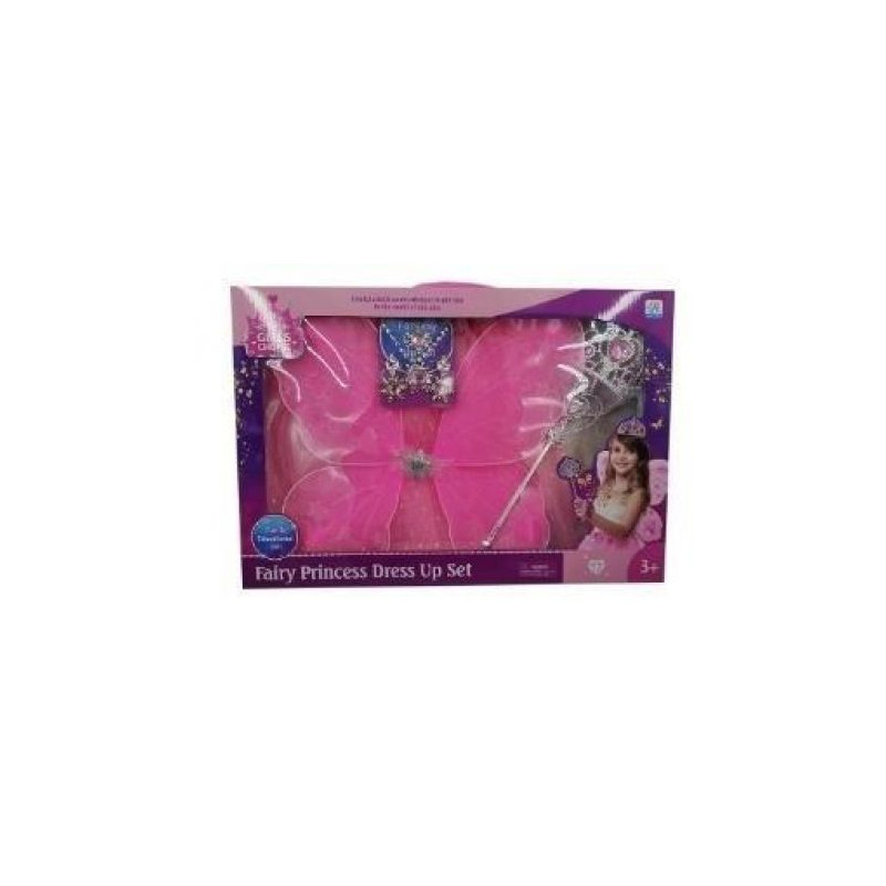 Kostium wróżki w kolorze różowym. W skład zestawu wchodzi : (skrzydełka, tiara, różdżka).
