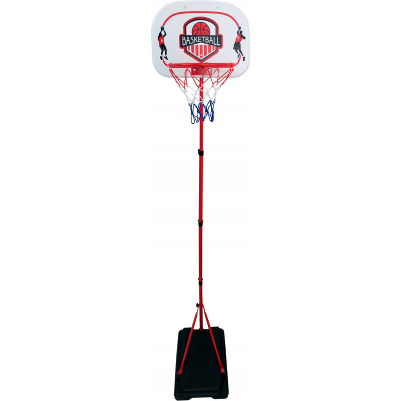 W zestawie regulowany, metalowy stojak, na którym można zamocować kosz z siatką do gry w koszykówkę, gumowa piłka oraz pompka. Aby uzyskać stabilność, należy do wnętrza podstawy nalać wody. Stojak składa się z 4 skręcanych elementów ok długości 36 cm dzięki czemu można regulować jego wysokość i dopasować do wzrostu dziecka.