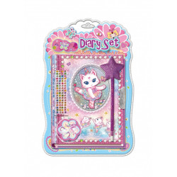 W zestawie znajduje się ozdobny długopis, naklejka 3D, cekiny samoprzylepne do ozdabiania oraz 2 kluczyki do zamka.