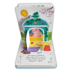 Zapraszamy na wieś, gdzie czekają zwierzęta w swoich wiejskich domkach, a w okienkach chowają się ukryte niespodzianki. Czym prędzej zaglądnij do książeczki – każda strona to niezwykła przygoda z ciekawymi okienkami do odkrycia. Oko nacieszą piękne, kolorowe rysunki przedstawiające wiejskie otoczenie. Można tu znaleźć krówkę, świnkę, kwokę z kurczętami, psa oraz konika w stajni oraz wiele ciekawych niespodzianek ukrytych w okienkach: kreta, zajączka, myszkę, owady i wiele innych. W książeczce znajdują się również zabawne wierszyki, w których ostatnie słowo dziecko może odgadnąć, otwierając okienko i odkrywając, jakie w środku znajduje się zwierzę. Książeczka rozkładanka to doskonała zabawa dla każdego dziecka, z jej pomocą maluch nauczy się rozpoznawać i nazywać wiejskie zwierzęta.