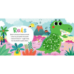 Książeczka sensoryczna z cekinami stymuluje zmysły malucha. Dziecko ogląda ilustracje niezwykłych jednorożców oraz dotyka i bawi się kolorowymi cekinami – każdy dinozaur ma inny kolor dołączonych dwustronnych wstawek z cekinami. Dotykając cekinów, dziecko uspokaja emocje, wycisza się i rozluźnia. Na starannych i odpowiednich dla małych dzieci kolorowych ilustracjach dziecko spotka się z barwnymi dinozaurami: uśmiechniętym Trickiem, groźnym Reksem, nurkującą w oceanie Plezjusiem, malutkim Diplosiem oraz latającym Pterkiem. Dodatkowym walorem książki są krótkie zabawne wierszyki o zwierzętach z ilustracji – doskonałe do ćwiczenia pamięci dziecka oraz wzbogacające jego słownictwo. Ta książka oprócz walorów poznawczych i zabawowych jest przede wszystkim doskonałą pomocą do ćwiczeń sensorycznych i motoryki małej malucha. Książeczka z cekinami – doskonały sposób na udaną zabawę i rozwój dziecka.