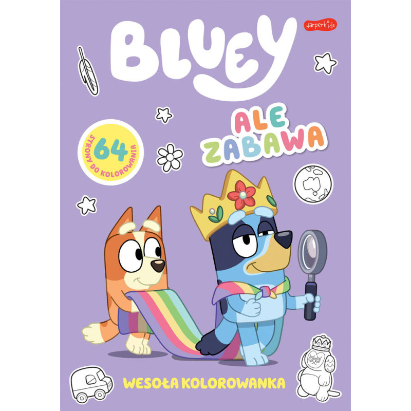 Pokoloruj uroczą suczkę Bluey (w polskiej wersji opowieści znaną także jako Blue), jej sympatyczną siostrę Bingo, a także rodziców i wszystkich innych bohaterów fantastycznego serialu! Duże i wyraźne obrazki, grube kontury, minimum szczegółów i tekstu to gwarancja dobrej zabawy nawet dla najmłodszych dzieci, które mogą kolorować obrazki, nie czytając poleceń. Zabawne teksty w klimacie serialu będą dodatkowym atutem, gdy do kolorowania włączą się rodzice, dziadkowie lub starsze rodzeństwo. Oprócz kolorowanki na rynku są już inne tytuły Bluey – w tym kartonowe książki w kształcie piesków, książka z zadaniami i scenki do wyklejania z naklejkami do wielokrotnego użytku. Serial „Bluey” to opowieść o przygodach psiej rodziny z Australii. Kreskówka podbija serca widzów w każdym wieku, a zabawne powiedzonka i określenia używane przez jej bohaterów weszły już do języka zarówno młodszych, jak i starszych fanów serialu.