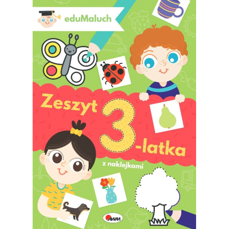 Przyjazna książka edukacyjna przeznaczona dla najmłodszych, różnorodne i ciekawe zadania zapewniają trening wielu umiejętności. Arkusz 24 naklejek do wykorzystania w książeczce. Sympatyczne ilustracje zachęcają do zabawy i nauki. Dzięki odpowiednio dobranym i zróżnicowanym zadaniom dzieci mogą ćwiczyć wiele kompetencji, świetnie się przy tym bawiąc. Książka w przyjaznej dla maluchów formie proponuje trening takich aktywności, jak: liczenie, znajdowanie podobieństw I różnic, przechodzenie labiryntów, rysowanie po śladzie, łączenie kropek, kolorowanie, przyklejanie naklejek. Na dole każdej strony znalazły się uwagi, które podpowiedzą rodzicom lub opiekunom, jak pracować z dzieckiem. Seria „EduMaluch” wspomaga podstawowy rozwój psychoruchowy dziecka. rysowanie usprawnia rękę, ćwiczy myślenie, skupienie uwagi oraz koordynację wzrokowo - ruchową. Dzięki aktywizowaniu mózgu wpływa również na rozwój mowy! To idealna propozycja dla rodziców, którym zależy na wszechstronnym rozwoju dziecka już od najmłodszych lat!