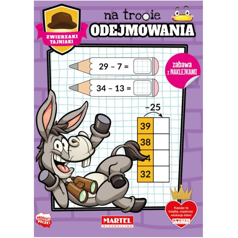 Książeczka Zwierzaki tajniaki na tropie to intrygująca zabawa dla dzieci szkolnych połączona z rozwiązywaniem działań matematycznych. Przedstawione w atrakcyjny sposób zadania tekstowe z odejmowania krok po kroku prowadzą do wyjaśnienia zagadek, a dołączone naklejki upewniają dziecko w prawidłowym liczeniu.