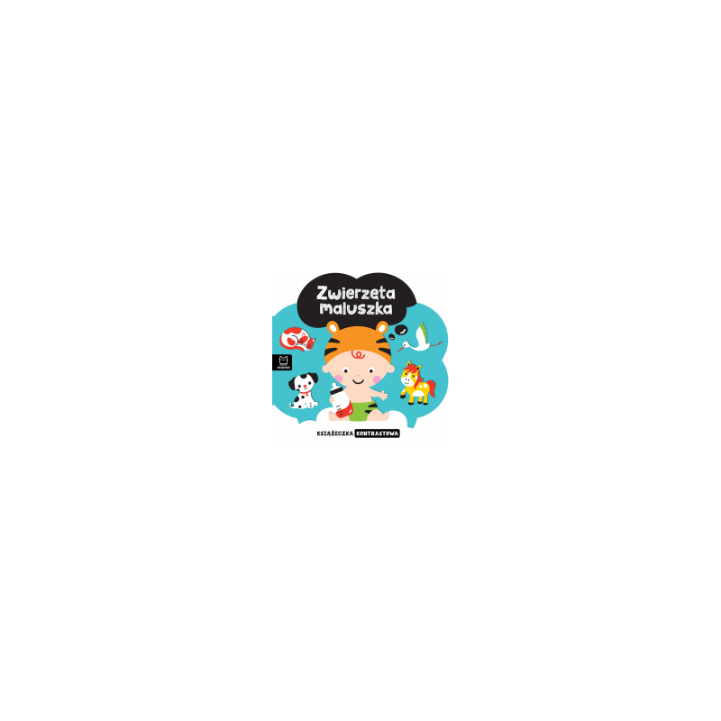 Zwierzęta maluszka , książeczka kontrastowa. Duże, kolorowe obrazki przyciągają wzrok dziecka pobudzając jego wyobraźnię. Wierszyki imitujące odgłosy zwierząt. Wiek 0-3+.