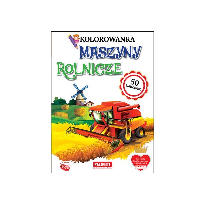 Kolorowanka maszyny rolnicze pozwoli dzieciom zapoznać się z pojazdami, które spotkać można na polach i w wiejskich gospodarstwach. Traktor z agregatem uprawowym, ciągnik ze zgrabiarką karuzelową czy sieczkarnia to tylko niektóre z tych niezwykłych maszyn. Książeczka zawiera 50 naklejek. Kolorowanie wpływa na rozwój wyobraźni, koncentracji, uczy planowania. Stron 16, oprawa miękka. Wiek 3+.