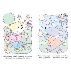 Do tej książeczki potrzebny będzie woda oraz pędzelek lub pisak na wodę. Wystarczy zamoczyć pędzelek w wodzie i kolorować obrazki. Pojawią się ilustrację wraz z wierszykami, które na pewno umilą dzieciom zabawę. Wiek 1+
