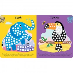 Książeczka do wyklejania mozaiki. Dzięki temu dzieci uczą się porządkować, nazywać kształty i kolory. Książki doskonale kształtują i rozwijają wyobraźnię. Przy wyklejaniu dzieci potrafią się wyciszyć i bardziej skupić na wykonywanym zadaniu.